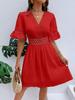 Women's Summer Splicing Lace Fashion V-neck Waist Solid Color Dress