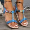 Fashion Flat sandals women's 2024 summer braided rope rhinestone fish mouth foreign trade cross-border large size spot wholesale