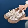 Fashion Vintage Cowhide Brown Flat Sole Women's Shoes Hollow Out Breathable Women's Shoes Summer Women's Shoes Soft and Healthy