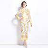 Spring Autumn Fashion Designer Print Runway 2 Piece Set Women Lapel Shirt And Elastic Waist Pocket Pant Suit