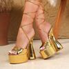 2024 Yeni Marka İlkbahar Yaz Sandalet Açık Burun Kalın Platform Yüksek Kalın Topuk Kadın Seksi Zarif Parti Ofis Bağcıklı Ayakkabı