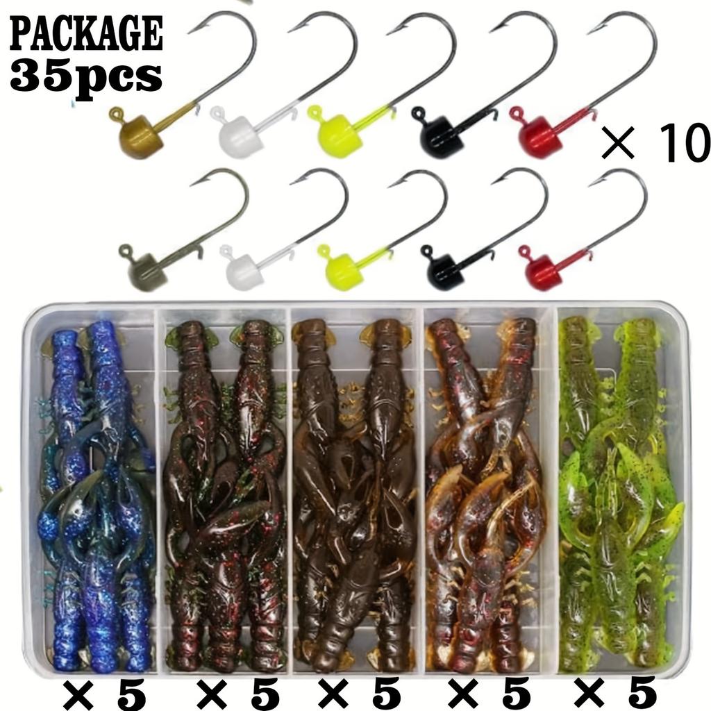 Ned Rig Fishing Kit with Soft Plastic Worms, Swimbait, Minnow, Crawfish, Shroom Baits - PVC Lures for Bass, Trout, Pike - Assorted Colors, Multi-Pack