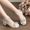 Fashion Printed Round Toe Chunky Heels High Heels Lace Up Retro Chunky Heels Women's Wedding Shoes Super High Heels Women's Shoes 2024