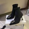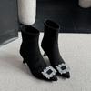 Fashion Winter Women Short Boots 2024new Style Luxury Rhinestone Design Stiletto Women Boots Versatile Solid Color Pointed Fashion Boots