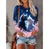 Women's 2024 Sleeves Stitching Fox Print Round Neck Long Sleeve Party Autumn Casual Pullover 3d Printing Casual Fashion Tops