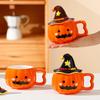Yaratıcı Balkabağı Şekli Ev Dayanıklı Seramik Kupa Büyük Kapasiteli İçme Suyu Kahve Kupaları Saplı Cadılar Bayramı Dekorasyon Kupası