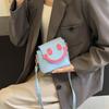Women Smiling Face Bag PU Leather Mini Crossbody Bag Contrast Color Cartoon Shoulder Bag Female Summer Daily Bag
