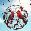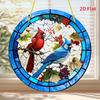 1pc, Cardinal and Holly Berry Welcome Wreath Sign, Winter Rustic Metal Tin Sign, Red Bird Decorative Stained Glass Wall Hanging