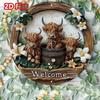 Attractive Highland Cow and Lily 8x8 inch aluminum signage UV and scratch resistant, easy to hang inside and outside decoration