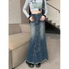Women's Spring and Autumn Split Retro Cowboy Half-body Skirt Irregular Raw Edge High Waist Slim Medium-length A-line Skirt