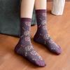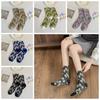 1 Pair Women Socks Floral Embossment Retro Cotton Middle Tube Socks Women Japanese Fashion Ethnic Harajuku Retro Cartoon Cute Socks