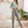 Fresh Homewear Pajamas Women's Round Neck Long-sleeved Trousers Milk Silk Autumn Round Neck Pullover Suit