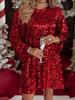 Bayan Sonbahar Bahar Elbise Parıltılı Payetli Yuvarlak Yaka Büyük Fiyonk Dekor Bol A Kesim Diz Üstü Mini Elbise Balo Ziyafet ve Buluşma İçin