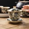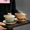 130ML Ru Kiln Manzara Porselen Gaiwan Seti Çay Kase Çay Takımı Fincan Çin Sarı Seramik Açılış Çay Kaseleri Çay Töreni