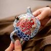 Metal Inlay Blue and White Dragon Teapot Single Ceramic Porcelain Chinese Kungfu Dragon Making Pot for Pu'er Tea