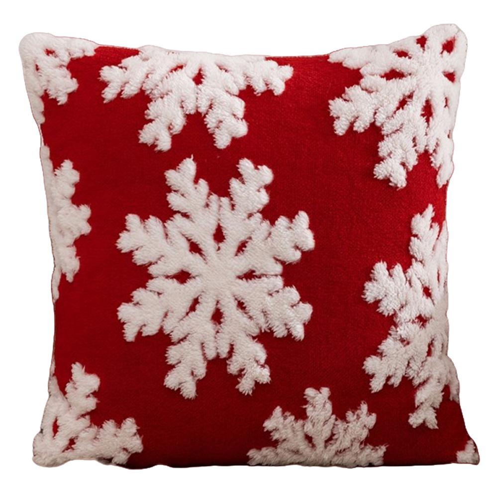 Christmas Cushion Cover Festival Pillow Case for Sofa Decor (Red Big Snowflake)