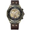 BINBOND Erkekler için Retro İskelet Steampunk Saat, Bronz Bezel, Otomatik Mekanik Saat, Deri Kayış, Su Geçirmez Erkek Kol Saati