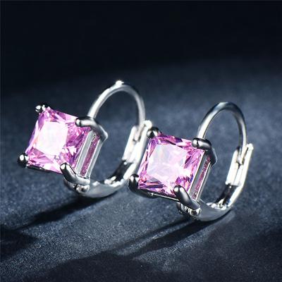Pink Diamond Earrings, Sweet Fairy Geometric Design Earrings, Everyday Jewelry