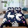 Alpaca Duvet Cover Set Cute Sloth Comforter Cover Cactus Funny Animal Bedding Set Polyester Love Heart Cartoon Style Quilt Cover