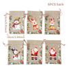 6Pcs Santa Claus Elk Bells Small Bear Drawstring Natural Burlap Bag Jute Gift Bag 10x15cm Cotton Linen Christmas Print Gift Bag
