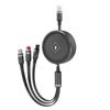 66W Fast-Charging Retractable 3-in-1 Data Cable with Storage & Electroplated Type-C