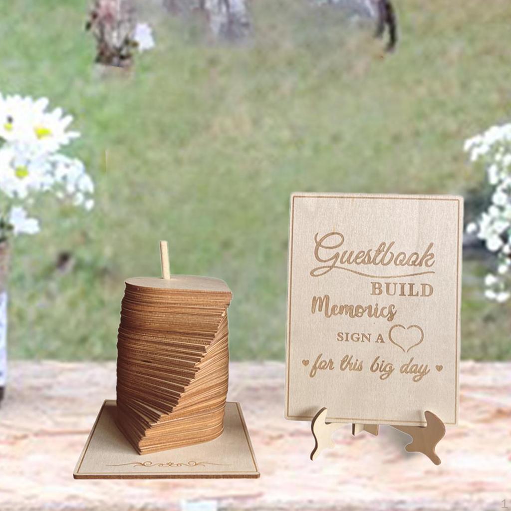 - 【Package Including】: Wedding guest book set, including 1 square base, 1 supporting stick , 72 heart shaped sign in cards, 1 prompt card and 2 prompt card base
