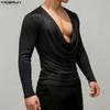 INCERUN Erkek Üstleri U Yaka Kesim Uzun Kollu Fitted Atletler Tişörtler
