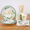 Yeşillik Okaliptüs Doğum Günün Kutlu Olsun Tek Kullanımlık Tabaklar Bardaklar Peçeteler Doğum Günü Partisi Dekorasyonu Yeşil Yaprak Desenli Doğum Günü Malzemeleri