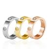 Titanium Steel Couple Ring Fashion Rose Gold Stainless Steel Six Rhinestone Ring Gift for Men and Women ADM