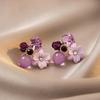 Purple Crystal Flower Stud Earrings For Woman Korean Fashion Jewelry Wedding Party Girl Elegance Set Accessories ADM