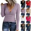 Kadın Tek Parça Tişört Slim Uzun Kollu V Yaka Düz Renk Tulum Üst