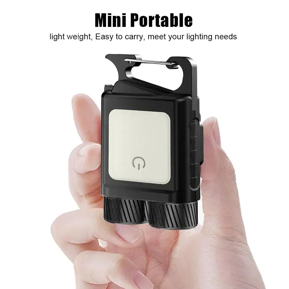 Mini Portable Flashlights Rechargeable 9 Modes Flashlight with Tail Hook Outdoor Camping Tent Light Pocket Keyhain Fishing Torch
