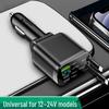 4'ü 1 Arada Geri Çekilebilir Araç Şarj Cihazı, 100W Hızlı Şarj, Çift Kablo, Voltaj Göstergesi, iPhone 15/14/Samsung için