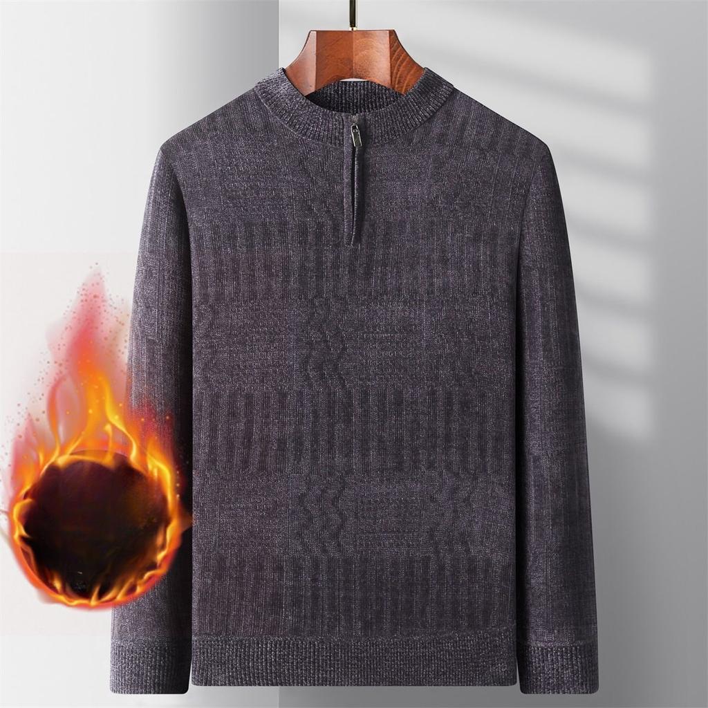 Men's Cozy Knit Sweater with Zip Detail - Long Sleeve, Round Neck Pullover for Fall & Winter | Perfect Gift
