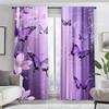 Ev Dekorasyonu İçin 2 Adet Mor Kelebek Baskılı Perde - Yatak Odası, Ofis, Mutfak, Oturma Odası İçin Çubuk Cepli Pencere Dekorasyonu