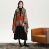 Double-Sided Plain Shawl With Striped Plaid Cloak Jacket And Thermal Scarf