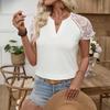 Summer Lace Short Sleeved V-neck Waffle Design Slim Fit Top for Women T-Shirts Women’s
