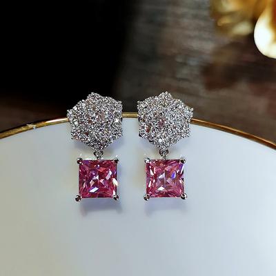 Zircon Flower Earrings Light Luxury High-End Stud Earrings Ins Temperament Earrings