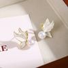 Pearl Leaf Fringed Earrings Niche Design Temperament Light Luxury Leaf Stud Earrings Mosquito Coil Disc No Ear Piercings Ear Clips Women