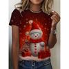 Christmas Cute 3D Snowman Graphic Casual Loose Fit Round Neck Short Sleeve T-Shirt For Women, Summer, Cotton Blended