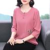Ladies' Spring Seven Sleeve T-shirt Loose Casual Round Neck Top