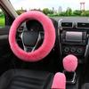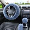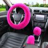 3Pcs/set Solid Soft Warm Long Wool Fuzzy Steering Wheel Cover Woolen Handbrake Car Accessory Sheep Fur Plush Protector Cover Kit