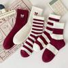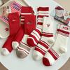 Ankara Red Socks Women'S New Embroidered Bow Striped Women'S Medium Tube Socks Trendy Girl Stacking Socks