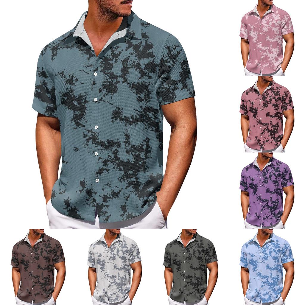 Erkek Hawaii Baskı Düğmesi Kısa Kollu Gömlek Erkek Günlük Moda Kısa Kollu Gömlek