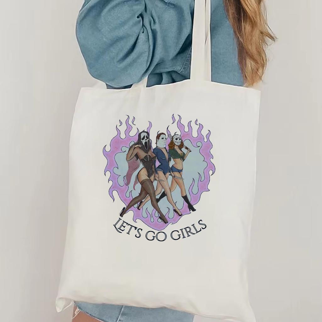 Horror Movies Ghost Fun Pattern Tote Bag Love Halloween Killers Scary Movies Canvas Bag Fall Horror Season Movies Shoulder Bag