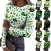 Tee Shirts For Women Fall Casual Long Sleeve Shirts Sweatshirt Retro Printing Top Pullover St. Patrick's Day