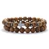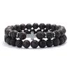 Simple Men Bracelet 2Pcs 6mm Natural Stone Meditation Yoga Brass Braclet Cross Hematite Lava Stone Faux Wooden Bead Strings