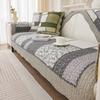 Cotton Sofa Cushion Four Seasons Universal Splicing Pastoral Style Couch Cushion Three Color Wooden Ear Edge Non-slip Sofa Cover