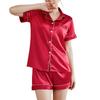 Kadın Yazlık Borulu Düz Renk Ev Giyim 2 Parça Kısa Kollu Şort Pijama Takımı Rahat Polo Yaka Ev Giyim