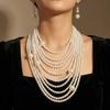 Imitation Pearls Multi-layer Necklace for Women Fashion Choker Clavicle Chain Earrings Ladies Elegant GZW